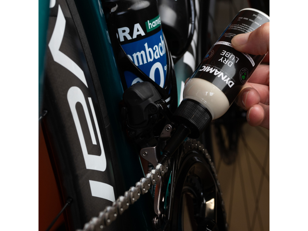 Zloženie maziva s veľmi nízkym koeficientom trenia rýchlo preniká do každého článku reťaze a poskytuje dlhotrvajúcu ochranu aj mazanie. Ideálna je aplikácia po vyčistení reťaze prípravkom Dynamic Chain Cleaner. Použite na reťaz aj ostatné pohyblivé časti bicykla, aby ste predišli usádzaniu prachu a predĺžili životnosť pohonu.