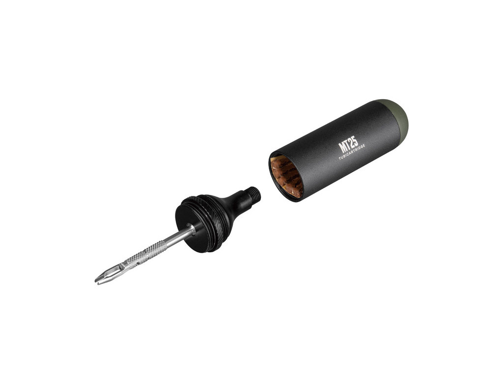 Minimalistická sada na opravu MTB tubeless plášťov, kompaktne uložená v puzdre, ktoré je tvarovo identické s CO2 náplňou. Tým pádom ju môžete upevniť aj do modulov CO2 hustiliek, kde je súčasťou aj držiak pre takéto CO2 náplne. TUBICARTRIDGE MT nájdete v module TUBI AIR2 DF. Sada obsahuje zdrsňovač otvoru s prevliekačom opravného knotu (2 v 1) + 3 kusy 3,5 x 50 mm opravných knotov na MTB tbl plášte.