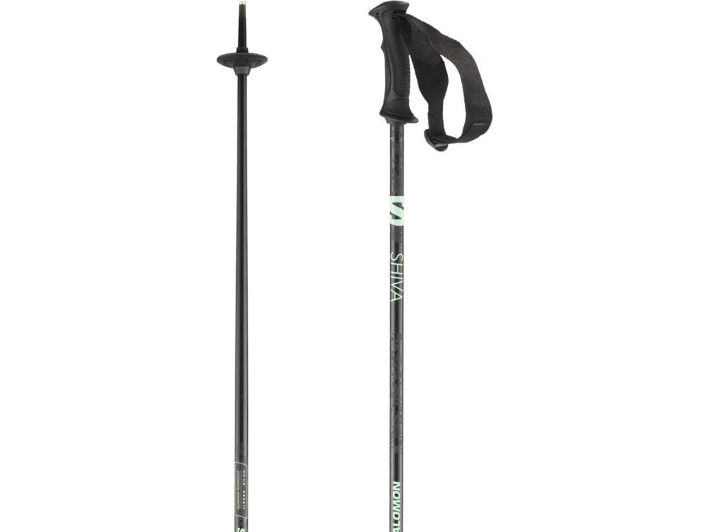 Dámske zjazdové palice Salomon Shiva s ľahkým hliníkovým tubusom, širokým pútkom a odolným oceľovým hrotom.