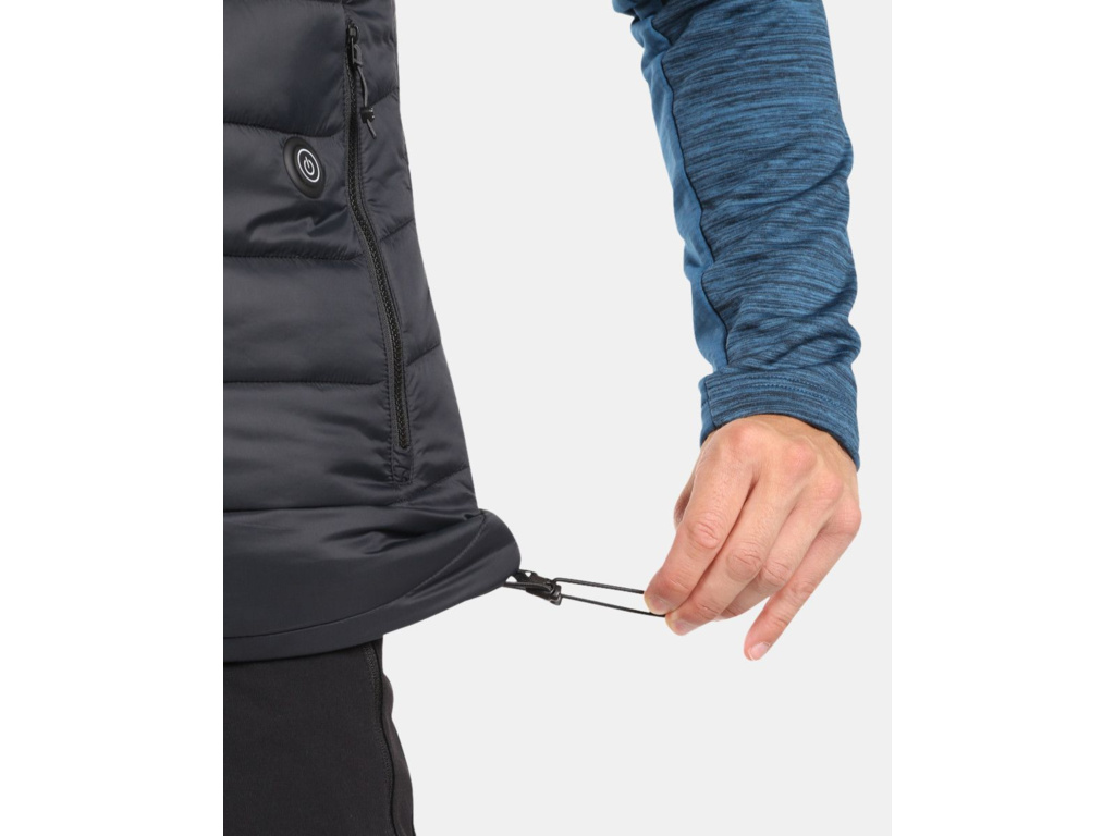 Vyhřívací panely jsou umístěny na hrudníku a zádech, ovládají se tlačítkem vedle kapsy, po připojení powerbanky, s výkonem alespoň 10 000 mAh. Nabízí tři teplotní stupně.