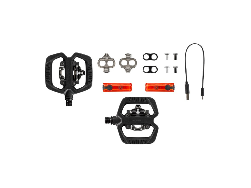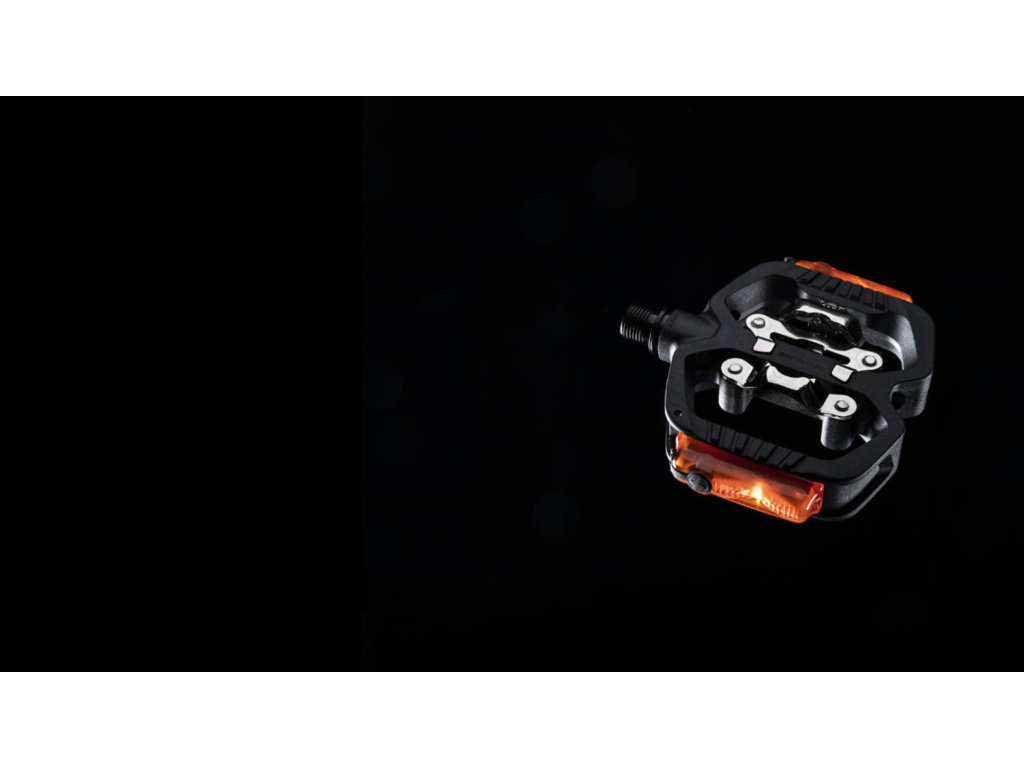 Geo Trekking VISION: pedále s všestranným svetlom, ktoré sa jednoducho pripína a odopína od pedálov, nabíja sa USB káblom a zvyšuje vašu bezpečnosť vďaka výkonu 15 lúmenov.