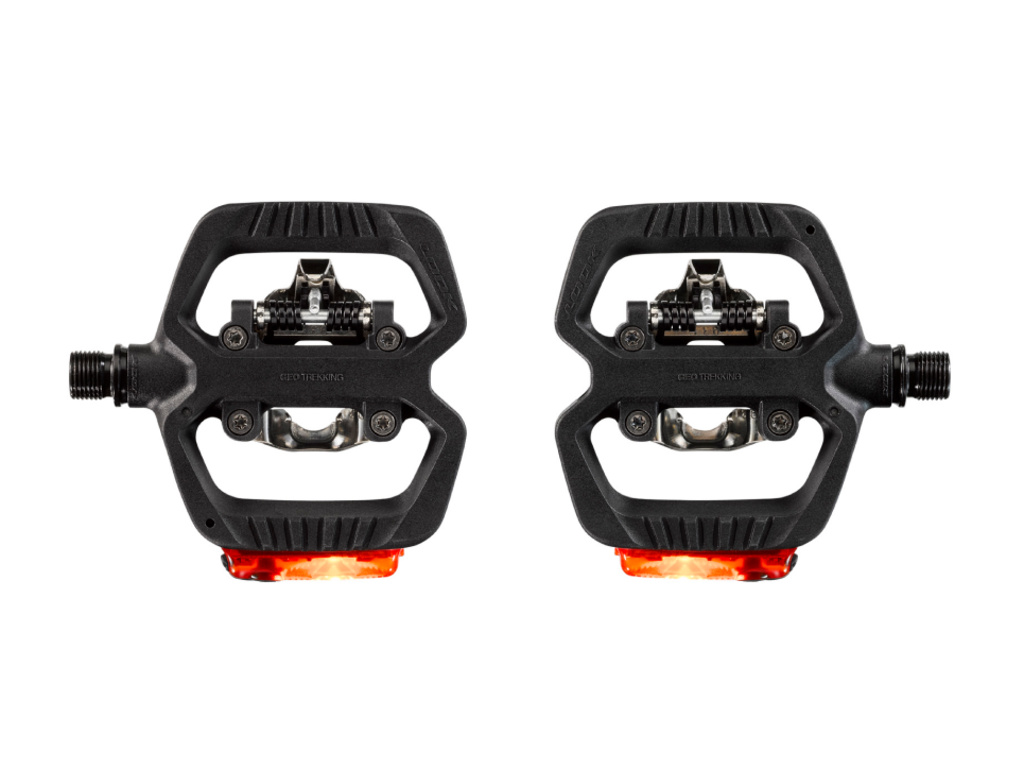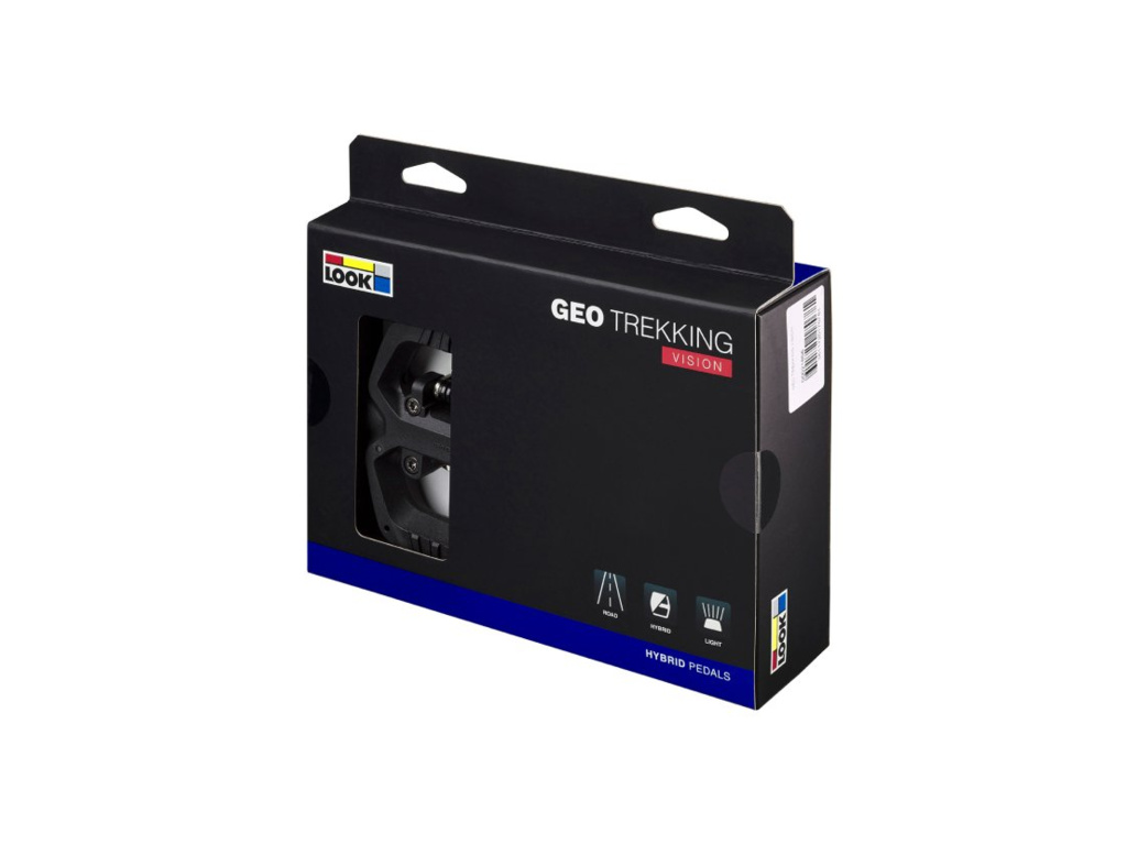 LOOK Geo Trekking je hybridný pedál, ktorý je na jednej strane plochý a na druhej strane kompatibilný s SPD, navrhnutý na každodenné cesty do práce, po meste alebo na cyklotrasy. Nášľapná strana je kompatibilná so systémom SPD a má jednoduchý systém nastavenia, ktorý umožňuje nastaviť predpätie od 5 do 10. Pedál je dodávaný s kuframi EASY, ktoré uľahčujú záber o 30 %.