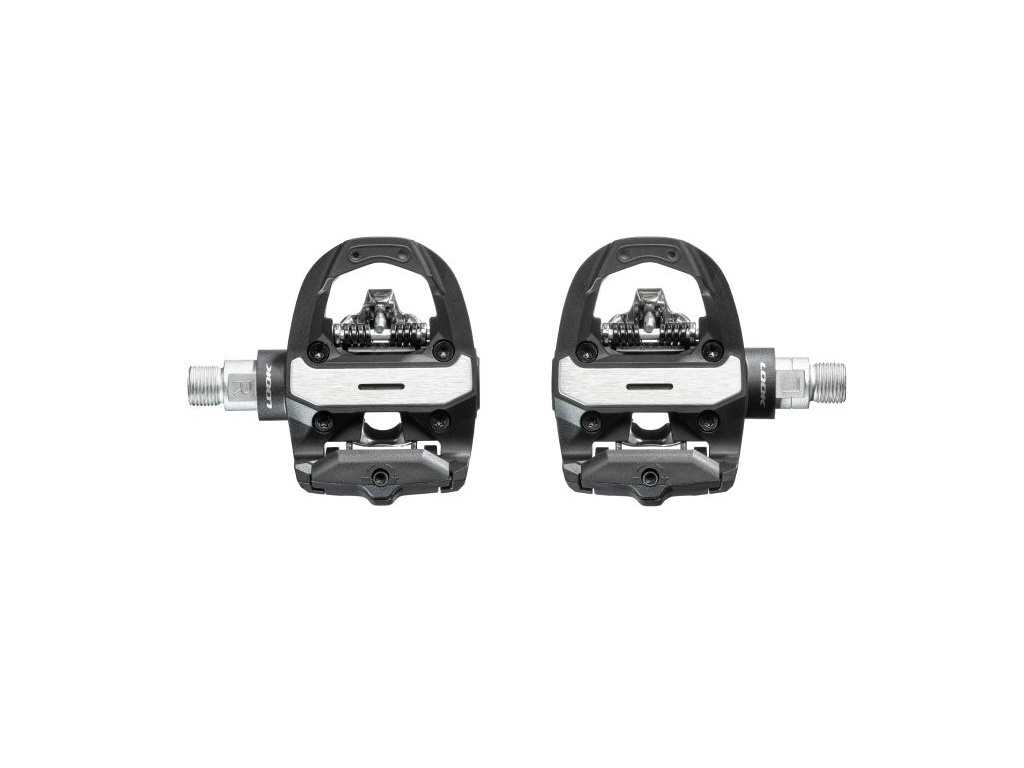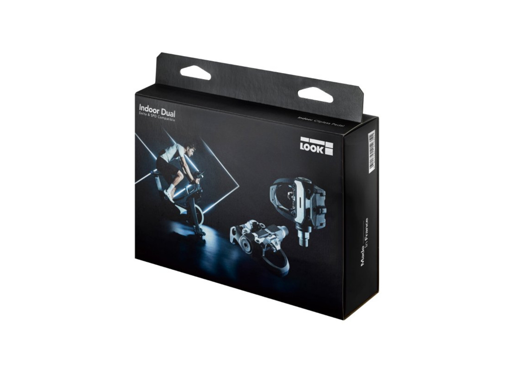 Tréninkové pedály Look Indoor Dual pro indoor použití. Pedály jsou oboustranné, z jedné strany je SPD upínání a z druhé strany silniční upínání pro systém Delta.