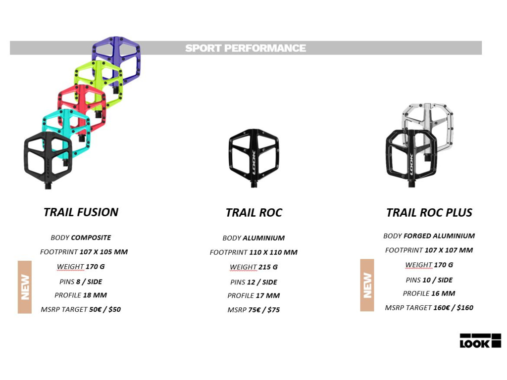 Platformové pedále LOOK Trail Roc+ boli navrhnuté, aby posunuli hranice priľnavosti a kontroly. Majú širokú, konkávnu platformu z kovaného hliníka a vysoko odolné osi pre dokonalú stabilitu a bezkonkurenčnú odolnosť.