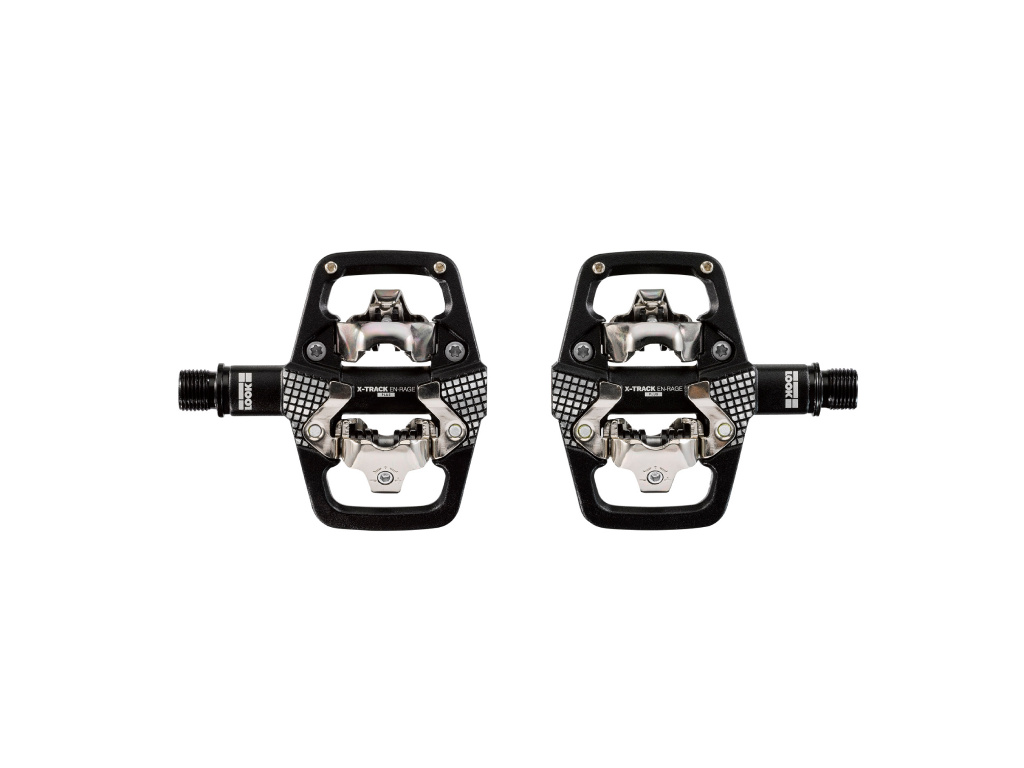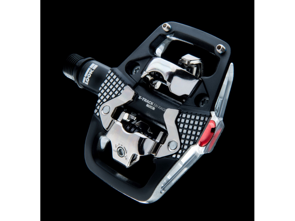 Pedál LOOK X-Track En-Rage Plus má kované hliníkové telo, ktoré zaisťuje neuveriteľnú pevnosť, a je kompatibilný so systémom SPD. Má 67 mm širokú platformu a 664 mm² kontaktnej plochy. To zaisťuje lepšiu stabilitu a oporu, najmä pri vysokých rýchlostiach. Čapy a rebrovanie tela pedála zaisťujú priľnavosť za všetkých okolností. Konštrukcia modelu bola navrhnutá na základe robustnej osi a ložiskového mechanizmu. Ten je odolný voči poškodeniu vonkajšími vplyvmi (kamene, korene, blato atď.). Bočná kontaktná opora vedie nohu pri hľadaní pedála a poskytuje kontaktný bod, aj keď sa topánka ešte nezacvakla. Táto široká kontaktná plocha zabraňuje kĺzaniu nohy po tele pedála a ponúka konzistentnú a istú oporu. Model X-Track En-Rage Plus dokonale vyhovuje požiadavkám enduro jazdcov