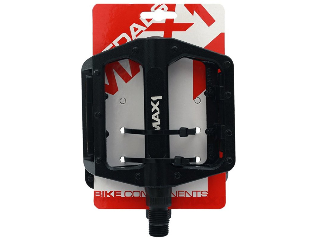 Celohliníkové pedále MAX1 so športovou platformou a odrazkami. Guľôčkové ložiskáČapy sú súčasťou tela pedáluOsa 9/16", Cr-MoRozmery.