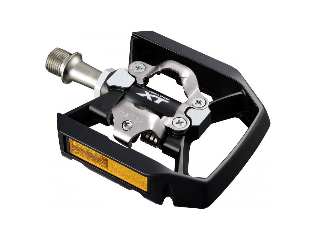 Najlepšie jednostranné SPD pedále s bicyklami Shimano Deore XT PD-T8000, ktoré majú na jednej strane klasický behúňový systém a na druhej strane klasickú platformu pre štandardné topánky. Pedále sú vybavené protitlóbnymi kolíkmi, ktoré zabezpečujú vynikajúcu stabilitu a bezpečnosť. Balík obsahuje pravý a ľavý pedál vrátane kufrov.