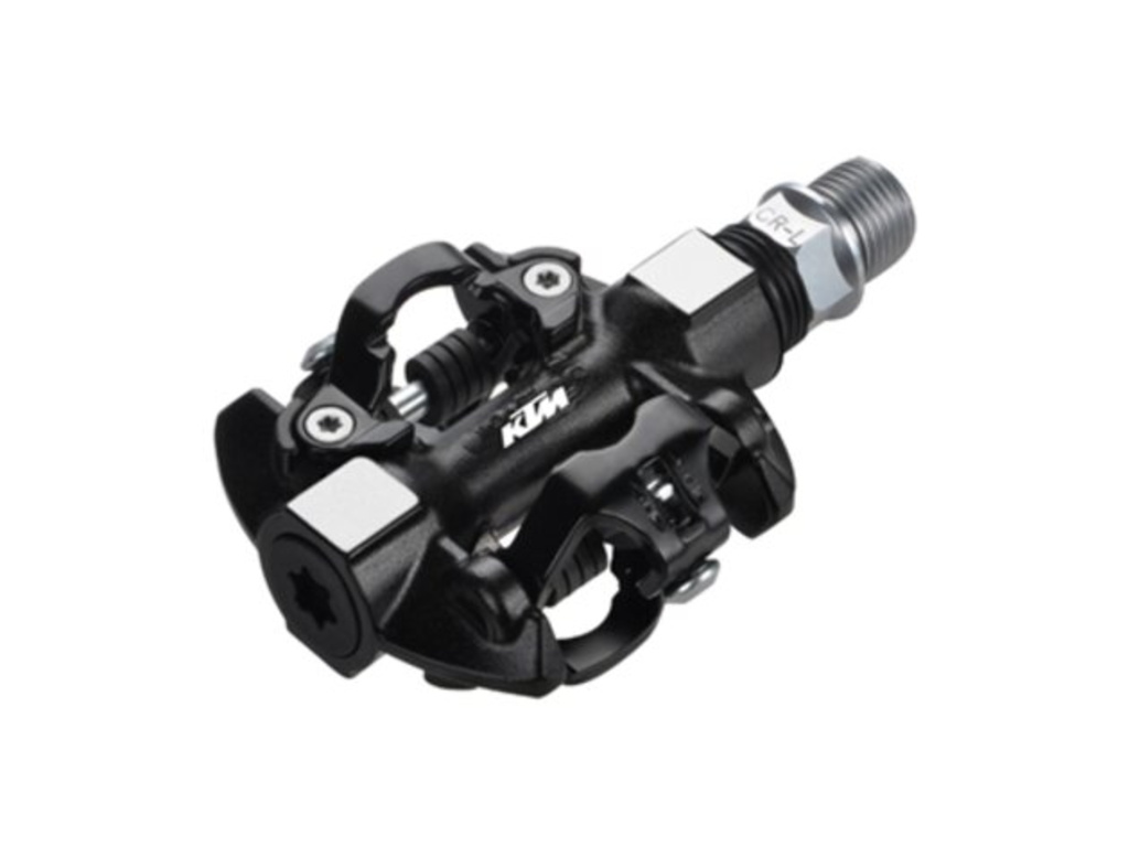 Černé MTB klikové pedály určené pro horská kola – nabízí spolehlivý a pevný záběr pro jízdu v terénu i na výletech.
