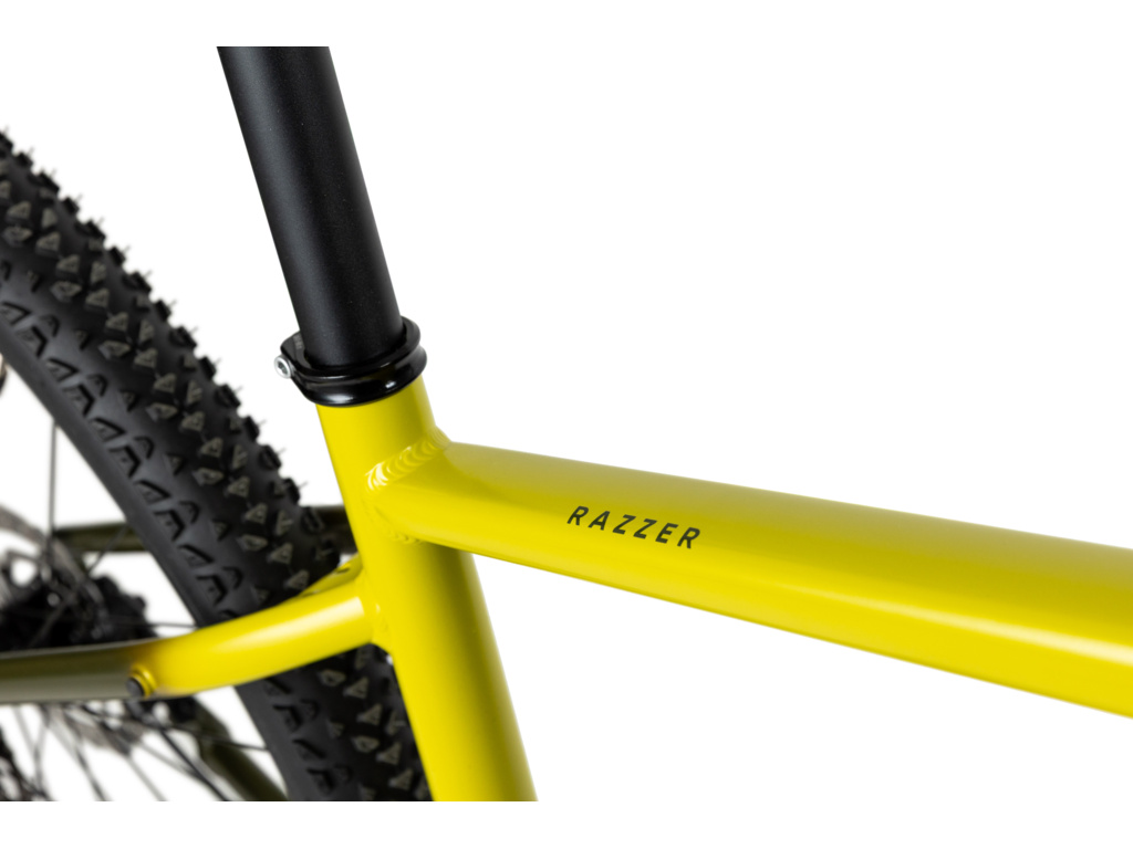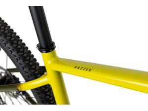 Razzer má Easy Trail geometriu, s ktorou si užiješ jazdu po cyklotrase, prvé pokusy o dlhšie trasy aj nenáročné singletraily. Rám je skvele ovládateľný a má výborné jazdné vlastnosti, ktoré ťa bezpečne dostanú na kopec aj dole.