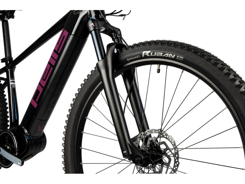 Dámsky elektrobicykel Pells Thorr First W má úplne prepracovaný rám s plne integrovanou batériou 630 Wh a osvedčeným motorom Bafang M400. Výbavu dopĺňajú komponenty Shimano Deore, hydraulické brzdy a odpružená vidlica SR Suntour XCR.