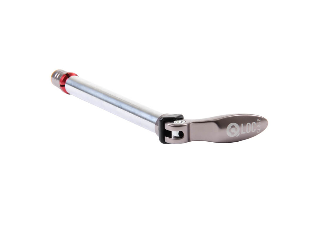Pevná os pre 15 mm náboje a vidlice. Pôvodný systém Q-LOCK vylepšený vo verzii 2. Demontáž predného kolesa je veľmi rýchla. Stačí uvoľniť páčku a stlačiť blokovacie tlačidlo palcom.