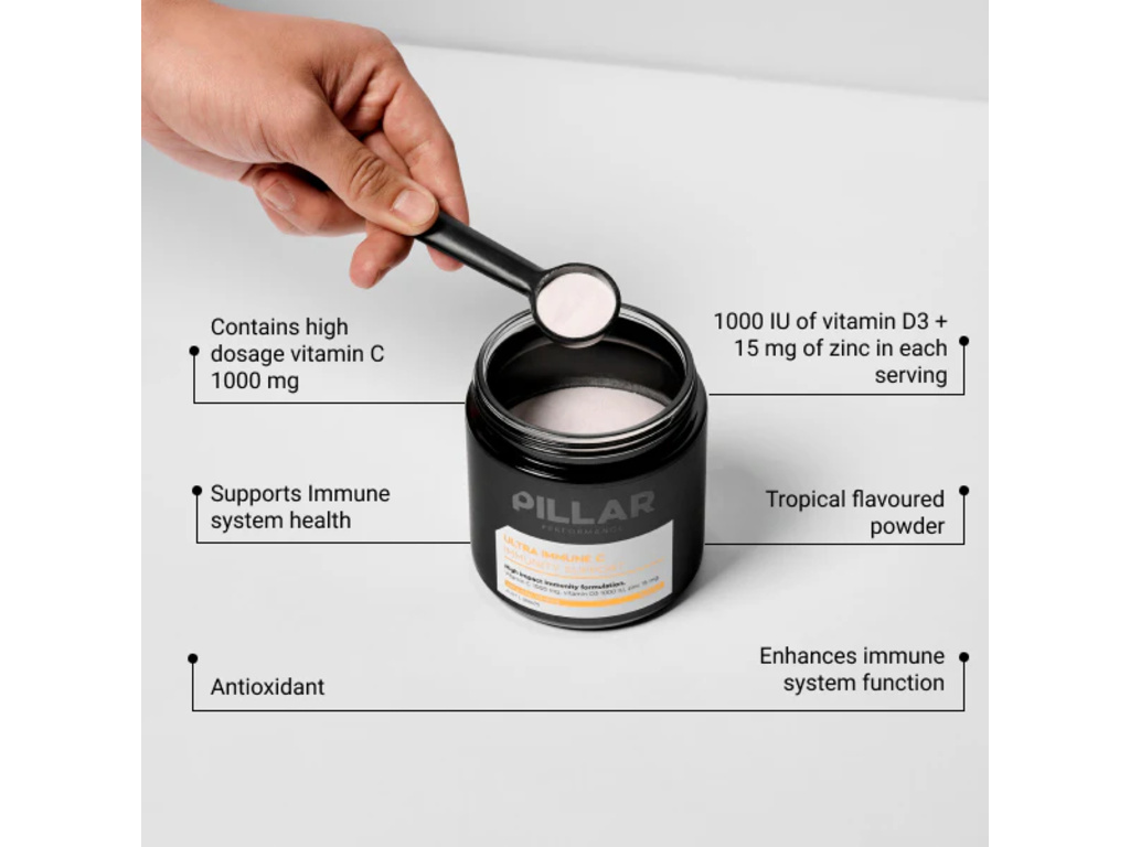 ULTRA IMMUNE C je ultra silné zloženie vitamínu C s vitamínom D3 a zinkom, ktoré poskytuje priamu a okamžitú podporu imunitného systému. Skracuje trvanie aj závažnosť príznakov nachladnutia a pomáha znížiť výpadky z tréningu.