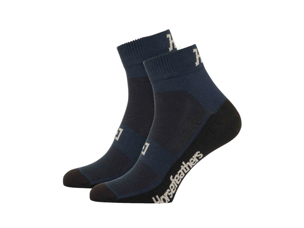 Ponožky Horsefeathers Jam nabízí extra prodyšné zóny, které pomáhají odvádět vodní páru pryč od nohy. Rychleschnoucí materiál s antibakteriální úpravou s ionty stříbra, které eliminují zápach.