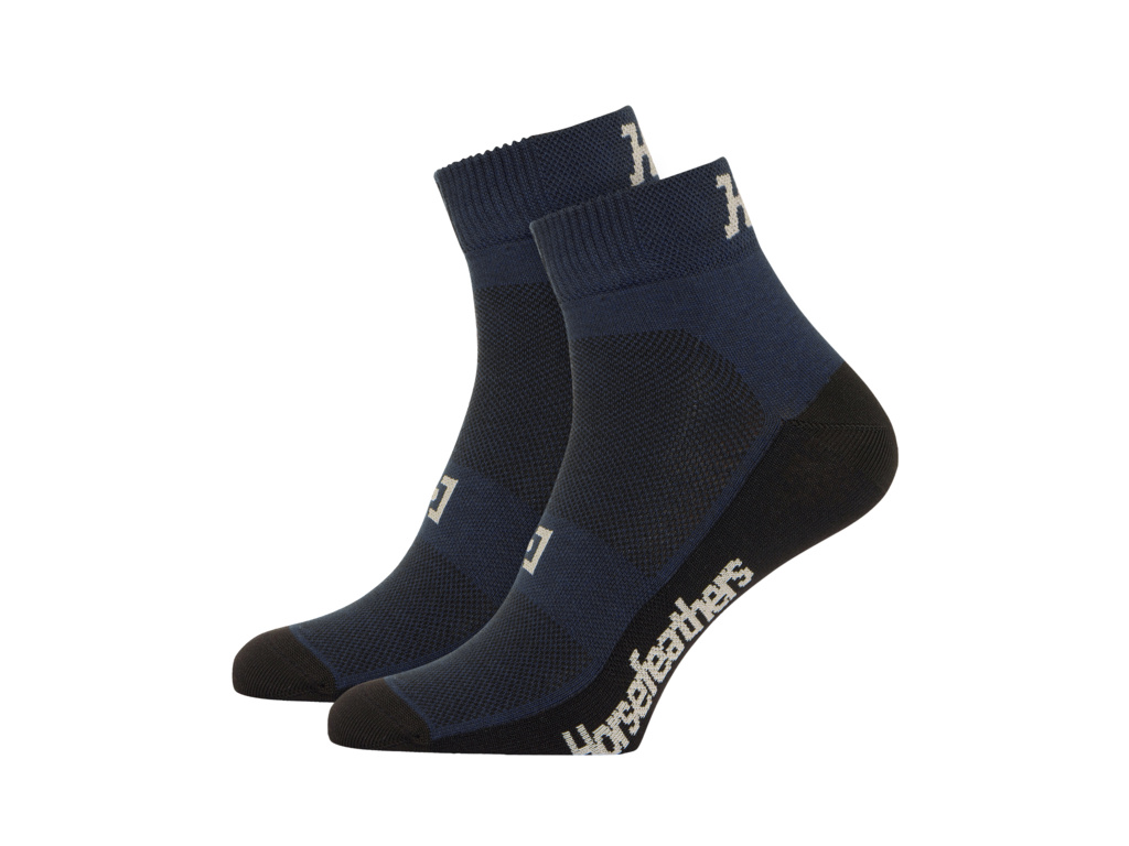 Ponožky Horsefeathers Jam nabízí extra prodyšné zóny, které pomáhají odvádět vodní páru pryč od nohy. Rychleschnoucí materiál s antibakteriální úpravou s ionty stříbra, které eliminují zápach.