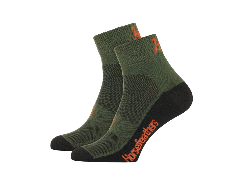 Ponožky Horsefeathers Jam nabízí extra prodyšné zóny, které pomáhají odvádět vodní páru pryč od nohy. Rychleschnoucí materiál s antibakteriální úpravou s ionty stříbra, které eliminují zápach.