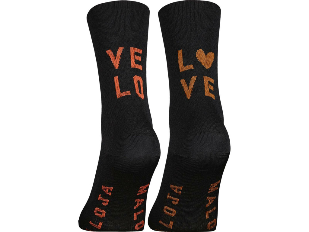 Dámské cyklistické ponožky Maloja SkutaM. s moderní prodlouženou délkou z rychle schnoucího materiálu, s výšivkou „VELO LOVE“.
