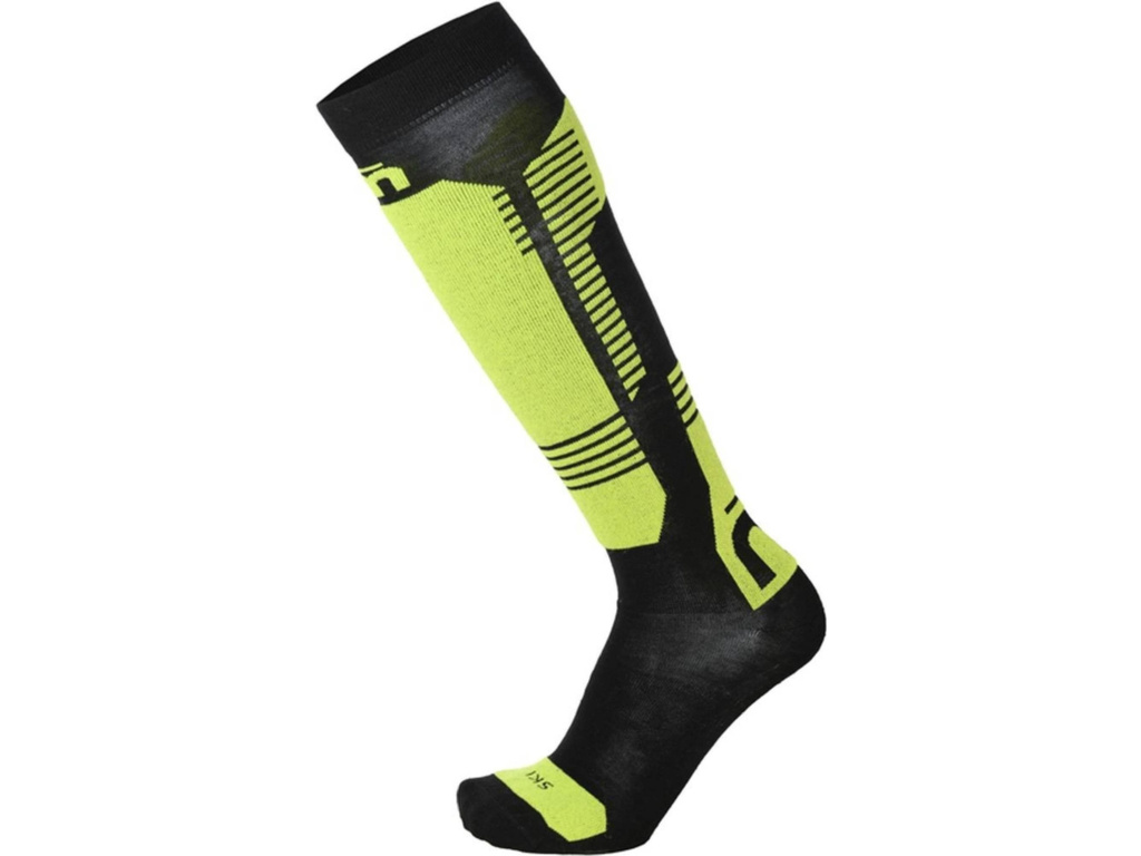 Ponožky MICO Calza Ski Natural Merinos Light Weight Nero Giallo Fluo - M