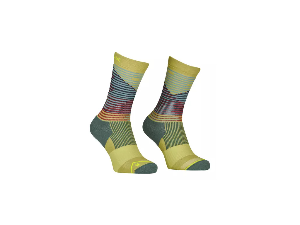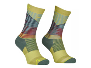 Pohodlná manžeta, ergonomický střih a podpora kotníku a klenby zajišťují pohodlné nošení i v těžkých turistických nebo alpinistických botách. Polstrovaná oblast paty a špičky činí ponožku odolnou a absorbuje malé nárazy při chůzi do kopce a z kopce. V neposlední řadě moderní a veselý design dělá z ALL MOUNTAIN MID SOCKS ideálního společníka pro náročné a dlouhé horské a vysokohorské túry v chladných dnech.