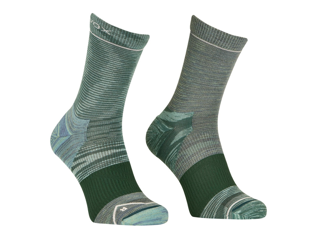 Dámske ponožky ORTOVOX ALPINIST QUARTER SOCKS sú ideálnym spoločníkom na všetky horské, lezecké a horolezecké túry. Sú pletené zo zmesi vlny Merino a syntetických materiálov. Vďaka tomu sú veľmi odolné, pohodlné a funkčné. Vlna dokonale absorbuje vlhkosť do svojho jadra a udrží vás v teple, aj keď je mokrá. Okrem toho má antibakteriálne vlastnosti a dokáže neutralizovať pachy. Polyamidové vlákna zvyšujú odolnosť a životnosť ponožiek.Funkčné ponožky ALPINIST QUARTER SOCKS vynikajú predovšetkým svojím ergonomickým tvarom. Počas procesu bezšvového pletenia sa vytvárajú špeciálne zóny, z ktorých každá plní špecifický účel:- prsty s plochými švami na elimináciu pľuzgierov.- zosilnená päta a špička pre väčšie pohodlie a dlhšiu životnosť.- 360° pás okolo klenby chodidla pre vynikajúcu priedušnosť a odvod vlhkosti.- Ponožka je ergonomicky tvarovaná tak, aby sa hodila na pravú a ľavú nohu zvlášť.- Ergonomicky tvarovaný členok, ktorý udrží ponožku na mieste a zabráni jej skĺznutiu.- Elastická manžeta zabraňujúca skĺznutiu.- Zosilnený úplet