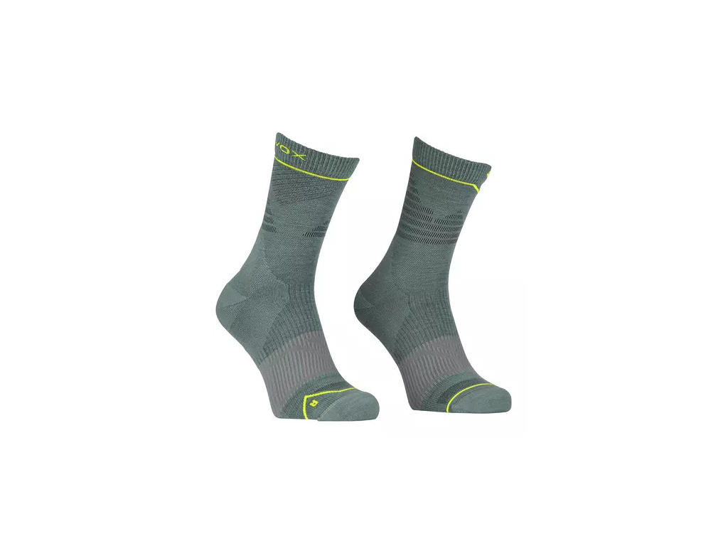Kompresní, vysoké pánské ponožky vhodné na náročné alpské túry a horolezectví. Díky kompresi se tvá lýtka unaví později a pevně obepnutá noha chrání před tvorbou puchýřů. Pánské vysoké ponožky ORTOVOX ALPINE PRO COMP MID SOCKS jsou ideální volbou pro namáhavé túry a dlouhé dny ve vysokých horách. Díky kompresi, která zvyšuje prokrvení a brání šíření laktátu, můžeš tyto radosti užít do sytosti bez pocitu těžkých a oteklých nohou. Jsou pleteny ze směsi Merino vlny a syntetiky. Díky tomu jsou velmi odolné, příjemné a funkční.