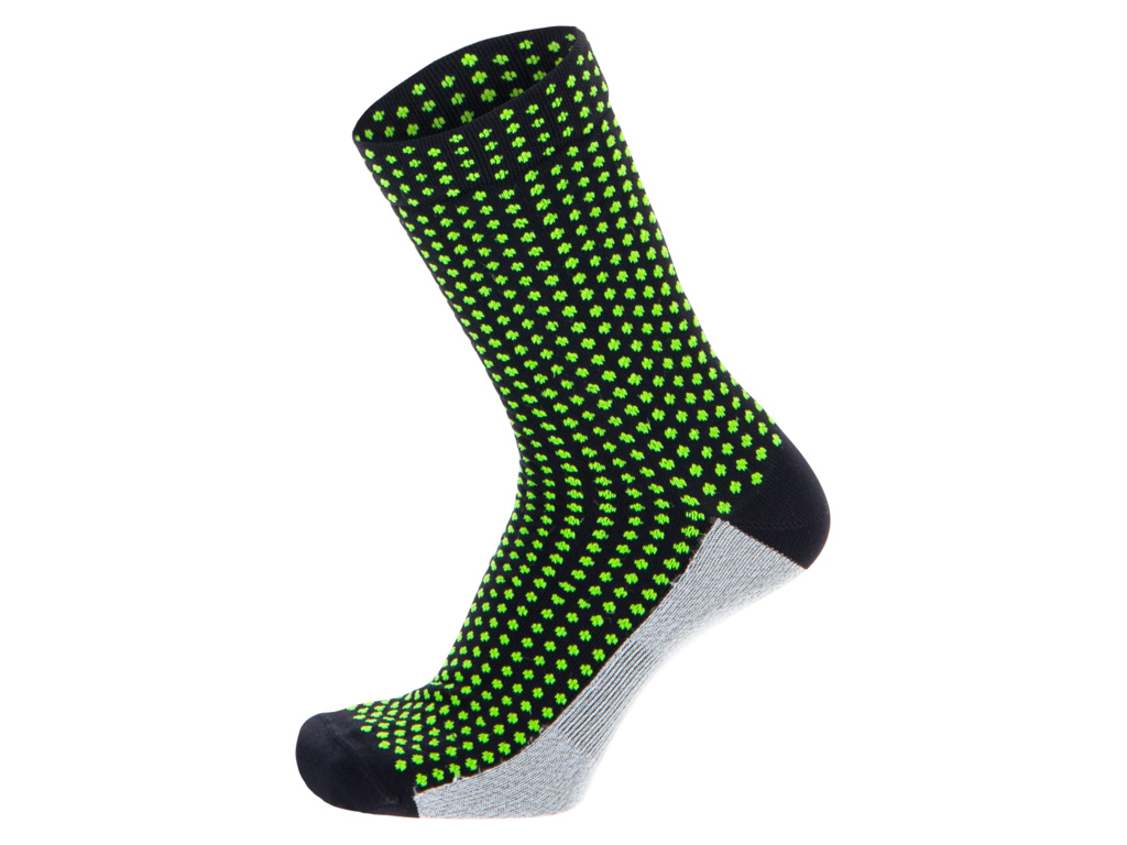 SANTINI Sfera sú cyklistické ponožky stredného strihu vyrobené z ľahkého kvalitného materiálu, ktorý podporuje priedušnosť a odolnosť voči zápachu. Vhodné na teplé letné dni na dlhé tréningy. Prvotriedna výrobná tkanina zaručuje maximálne pohodlie - ponožky sú príjemné na dotyk, nepadajú a zostávajú na svojom mieste. Okrem toho nemenia svoj tvar ani farbu ani po niekoľkých praniach.