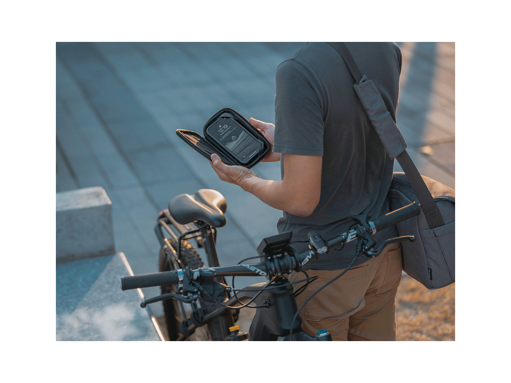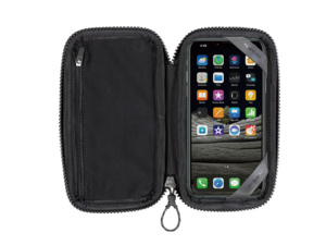 Odolné puzdro / peňaženka zo série PAKGO vo veľkosti L s jemným velúrovým poťahom vovnútri pre čo najlepšiu ochranu vašich osobných vecí a telefónu. Dodatočné vnútorné vrecko na zipz z mesh tkaniny je vhodné na uchovanie kľúčov, bankoviek, mincí, platobnej karty alebo dokladov. Vás telefón zasa bezpečne udrží v puzdre elastický silikónový popruh, aj keď je puzdro otvorené. Rozmery puzdra sú ideálne pre nosenie v zadnom vrecku vášho cyklistického dresu.