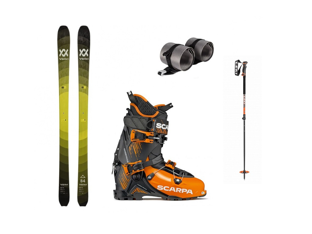 Kompletní skialpová výbava k zapůjčení na prodejně v Kravařích. Vhodná pro postavy nad 180 cm.