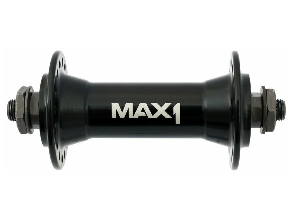 Vysokokvalitný hliníkový predný náboj MAX1 pre ráfikové brzdy a kotúčovú montáž Center lock v čiernom vyhotovení