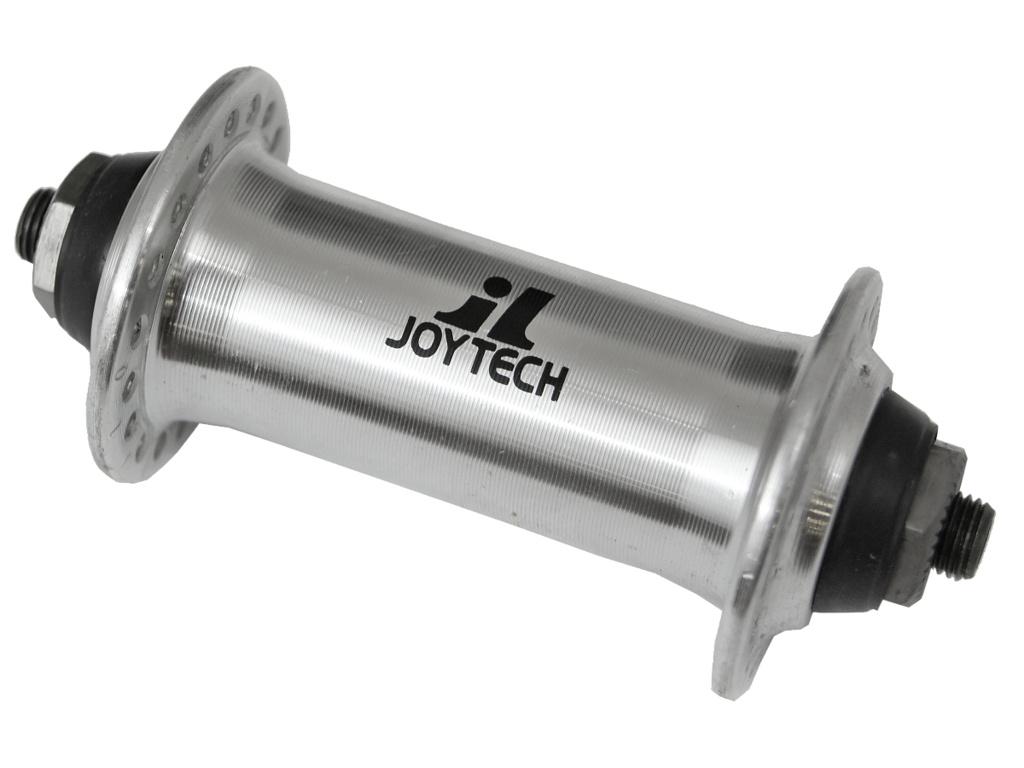 Přední náboj Joytech pro rychloupínák, ve stříbrné barvě.