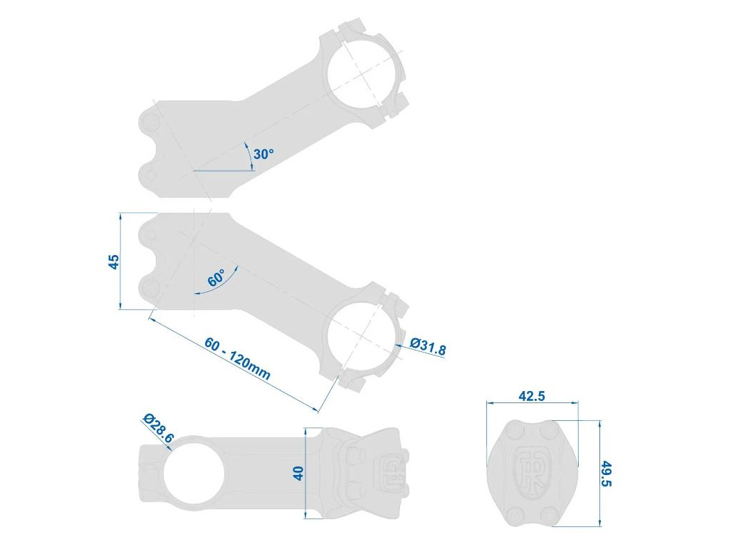 Tuhý MTB/treking predstavec zo zliatiny 6061, uhol 30 stupňov, hmotnosť 170 g pri 110 mm, objímka pre riadidlá 31,8 mm.