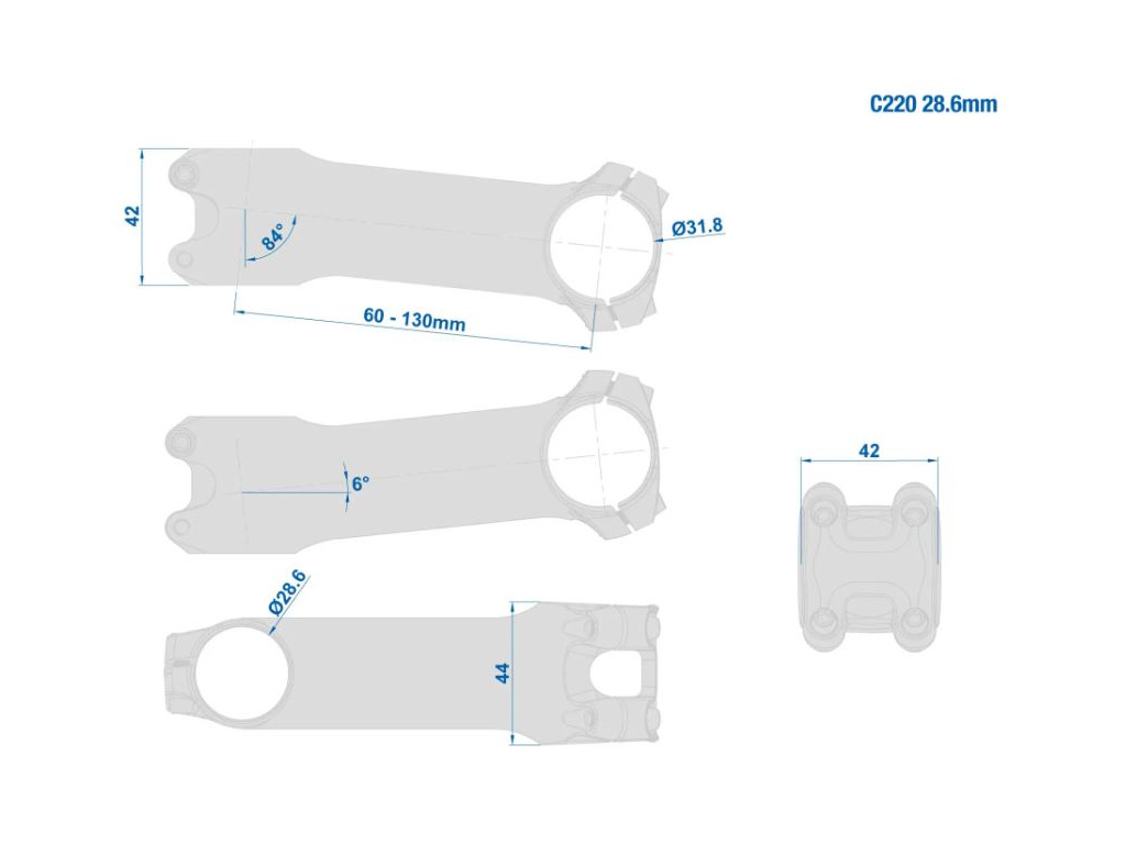 Naozaj môžete mať všetko – predstavec WCS C220 so svojím výkonom vyrovná revolučnému dizajnu predstavca C260, ale jeho montáž a demontáž je rýchlejšia a jednoduchšia vďaka nalisovanému rozhraniu na riadidlá a dopredu smerujúcemu hardvéru. Predstavec WCS C22 84D ponúka 6° kladného alebo záporného stúpania. Konštrukcia objímky riadidiel C220, ktorá sa prvýkrát osvedčila na predstavci Ritchey Trail, vytvára bezpečnejšie rozhranie tým, že omotáva riadidlá o celých 220 °. Sily skrutiek sú vyrovnané so svorkou tak, že telo predstavca „objíma“ riadidlá, ktoré sú menej náchylné na poškodenie ľahkých riadidiel. Táto konštrukcia svorky umožňuje ľahšiu čelnú dosku a telo predstavca bez obetovania pevnosti alebo tuhosti. Telo predstavca je z kovaného hliníka 2014 na ďalšie zníženie hmotnosti. Všade sú použité čierne skrutky z nerezovej ocele prvotriednej kvality.