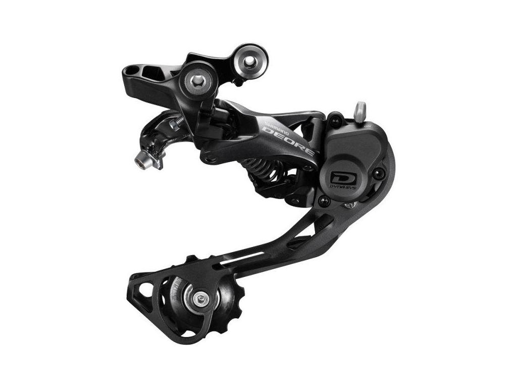 Prehadzovačka Shimano Deore z nového modelu RD-M6000 s dlhým vedením SGS, prepracovaným dizajnom Shadow a optimalizovaným profilom zubov kladky.