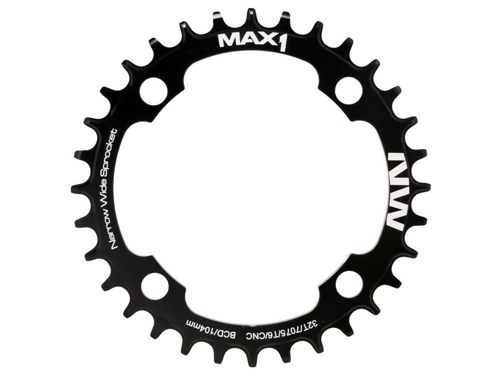 Prehadzovačka MAX1 Narrow Wide na montáž na 104 mm kľuky.Tvar zubov zabezpečuje hladký chod a stabilitu reťaze pri prevodoch 1x10 alebo 1x11, takže prehadzovačku možno použiť na radenie 10 aj 11 rýchlostí. CNC spracovanie Povrchová úprava Elox