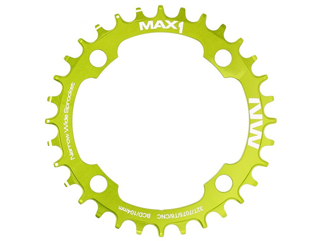 Prehadzovačka MAX1 Narrow Wide na montáž na 104 mm kľuky.Tvar zubov zabezpečuje hladký chod a stabilitu reťaze pri prevodoch 1x10 alebo 1x11, takže prehadzovačku možno použiť na radenie 10 aj 11 rýchlostí. CNC spracovanie Povrchová úprava Elox