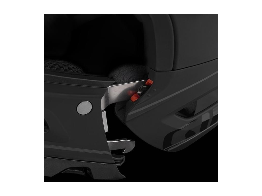 Prilba Giro Switchblade MIPS je naša nová integrálna prilba s odnímateľným chráničom brady, ktorá spĺňa certifikáciu ASTM pre zjazdové lyžovanie. Switchblade je plne optimalizovaný na používanie pri zjazde z kopca, a preto spĺňa všetky požadované normy: CPSC, EN-1078 a ASTM-1952-DH, s chráničom brady aj bez neho! Mechanizmus uvoľnenia chrániča brady je jednoduchý: stlačte tlačidlo, vyklopte ho a vytiahnite. Tým sa okamžite zvýši schopnosť prilby vetrať počas cesty nahor. Úplný upínací systém Roc Loc Air DH sa stará o pripevnenie na hlavu. Upínací systém: Roc Loc® Air DHC