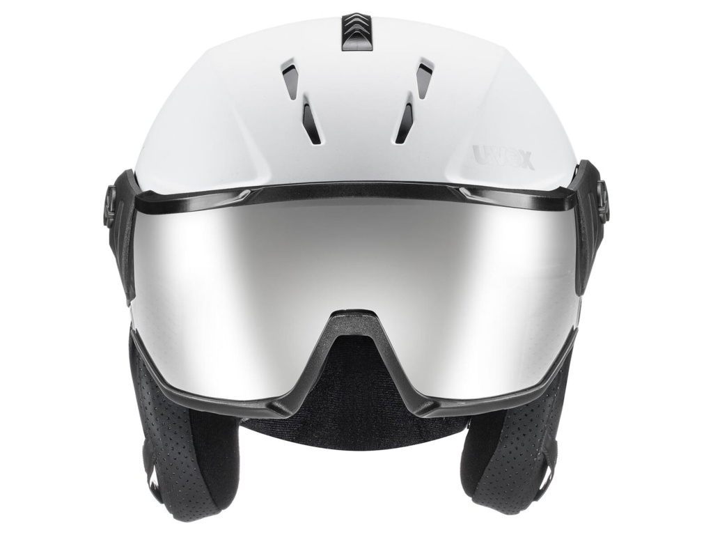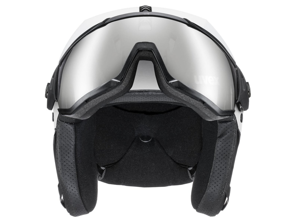 Stříbrný zrcadlový štít s antifog úpravou Uvex Supravision® je anatomicky optimalizovaný – perfektně doléhá k obličeji, nabízí tři aretační polohy a zajišťuje výhled bez průvanu, ať už jedeš jakkoliv rychle.