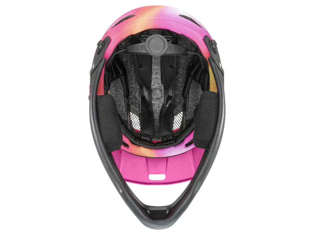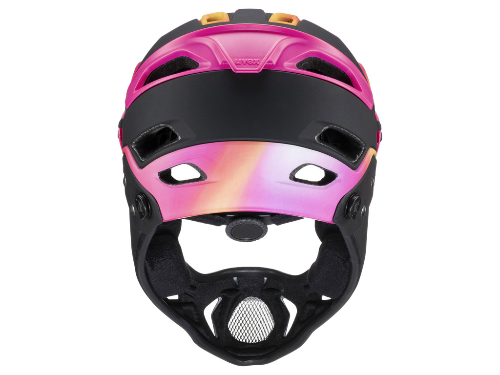 Do kopca, z kopca, flowtrail, bikepark - uvex jakkyl 2.0 pokrýva všetky možnosti. V priebehu niekoľkých sekúnd sa zmení z poloplášťovej na robustnú celotvárovú prilbu. Horská cyklistika enduro je predovšetkým o všestrannosti.