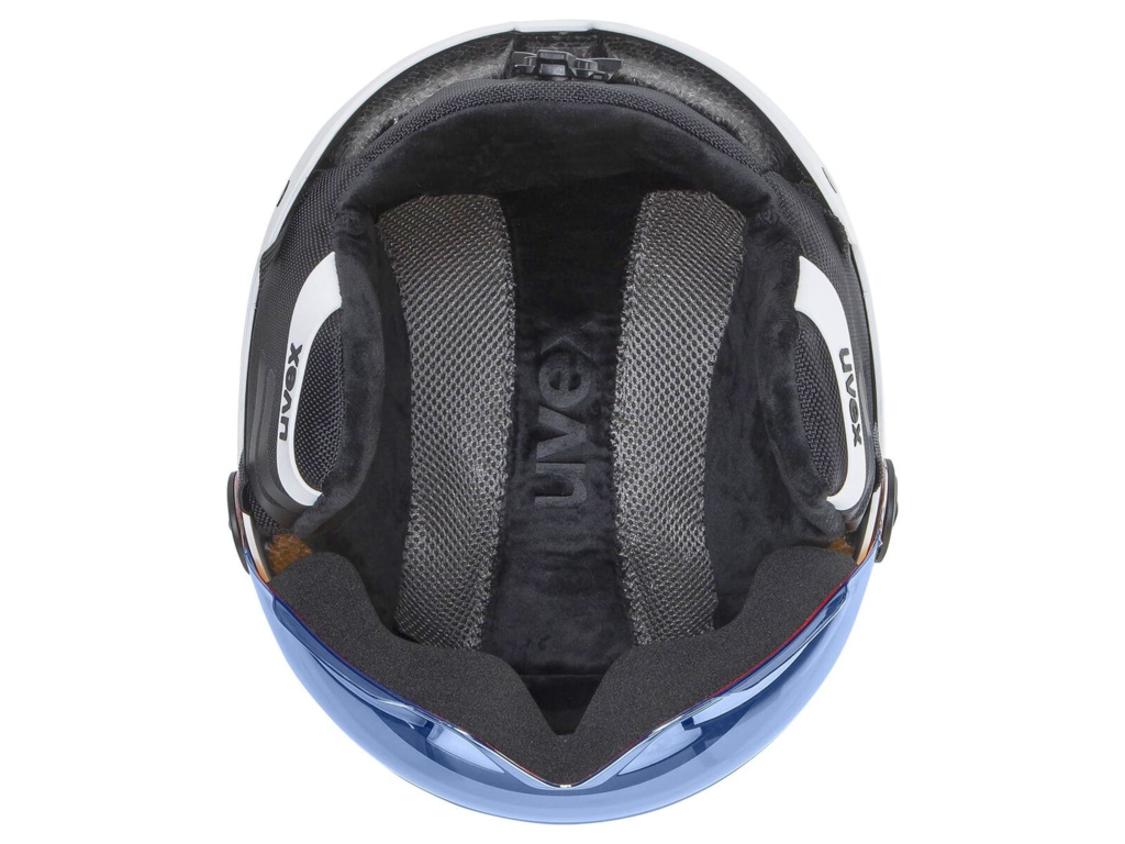 Brýle můžete klidně nechat doma! Velký, lehce zrcadlový štít se zabarvením lasergold lite, který zvyšuje kontrast a je vybaven proti-mlžící úpravou uvex supravision®, zaručuje perfektní výhled za všech podmínek. Měkké výstelky a zateplený límec zajišťují maximální pohodlí.
