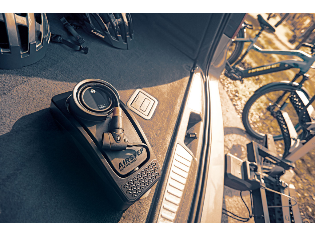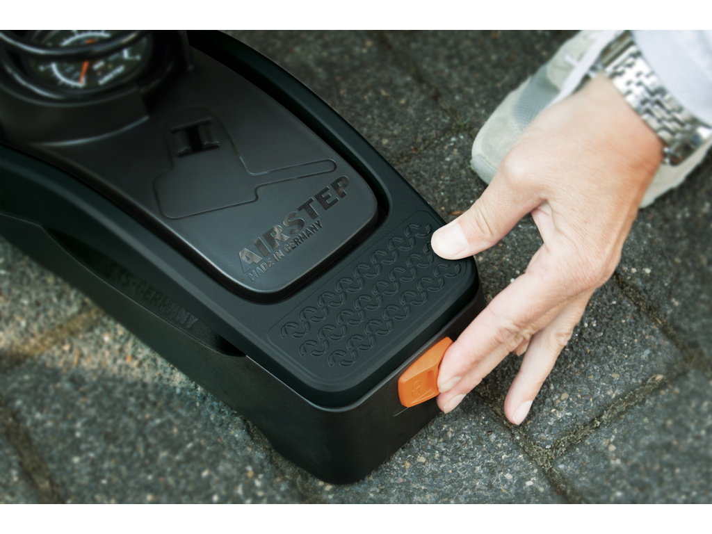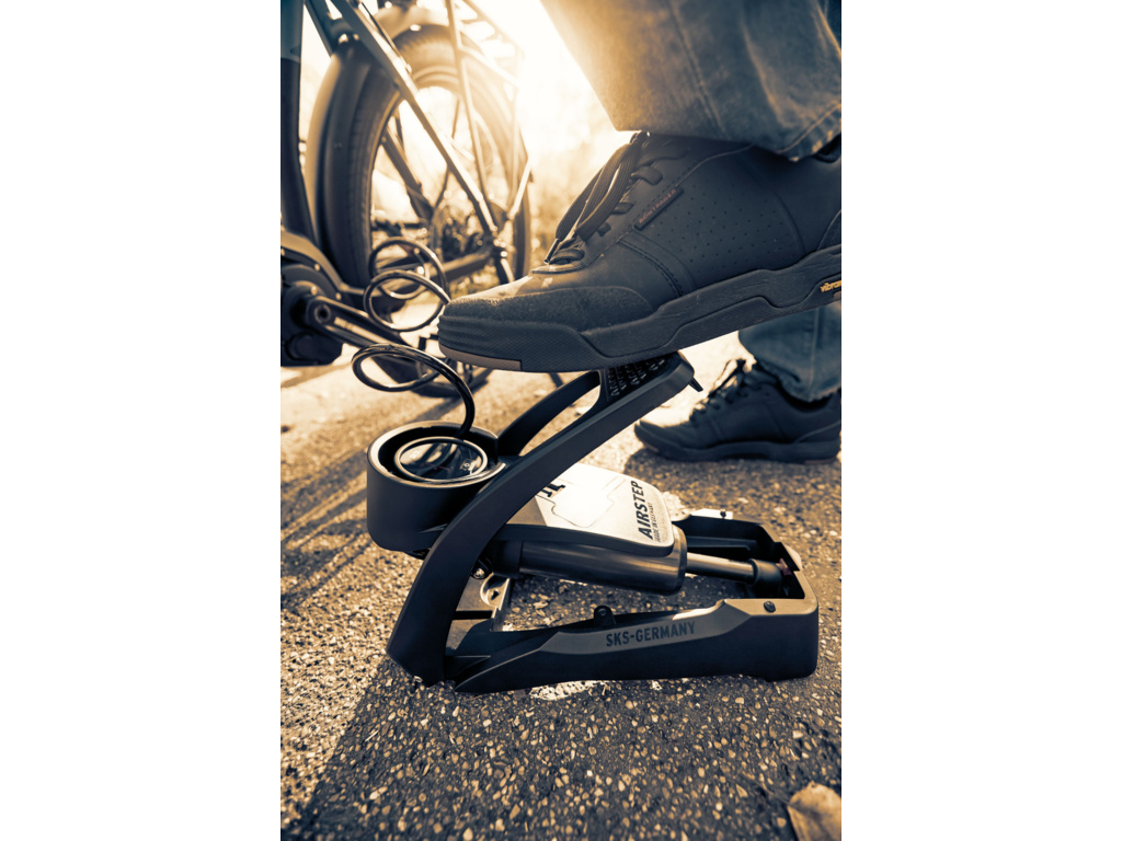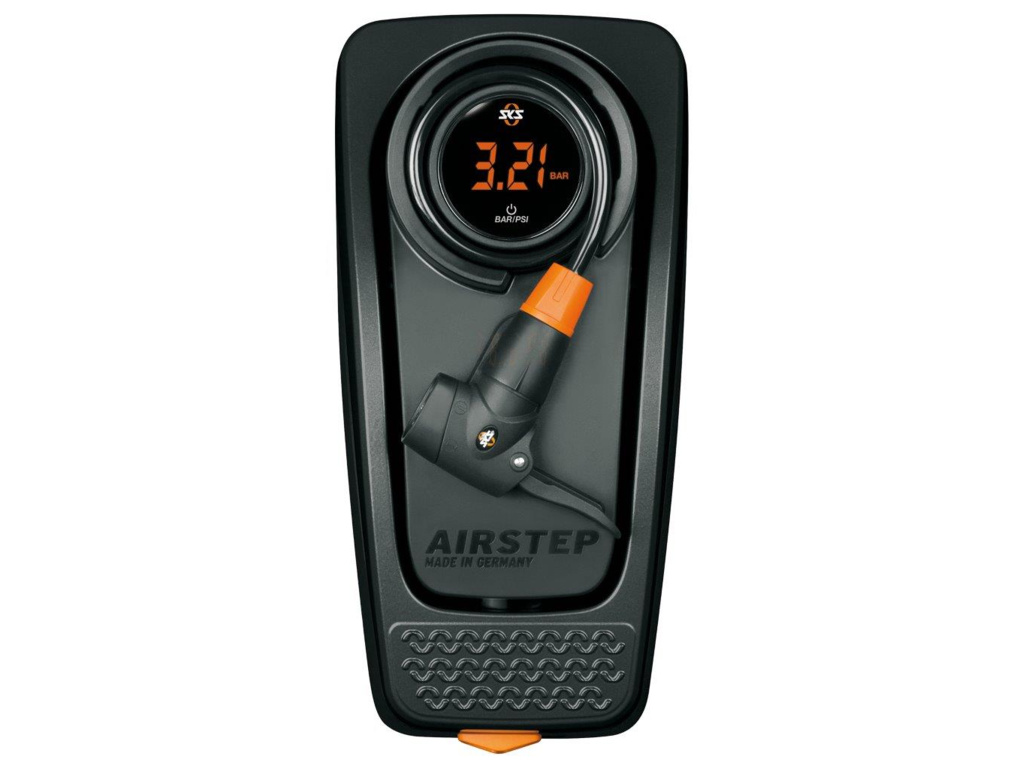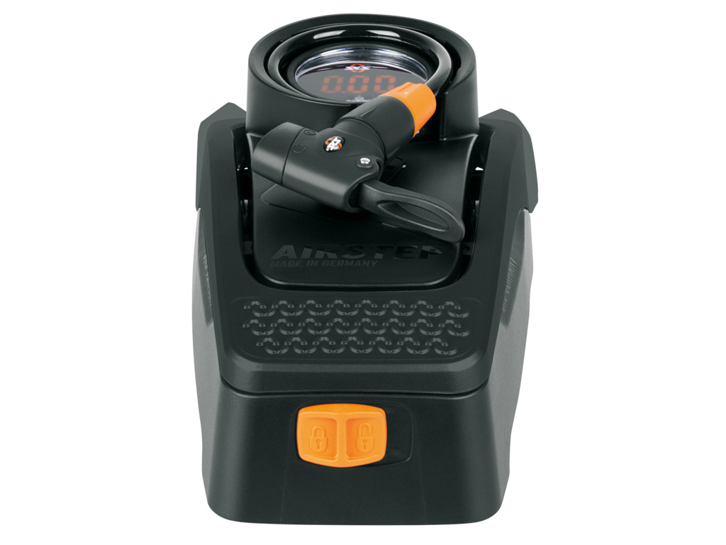 SKS AirStep Digi je nový model nožnej pumpy s veľmi dobre čitateľným displejom s veľkými číslicami. Integrovaná hadica na všetky typy ventilčekov, max. Tlak 7 bar / 102 PSI.
