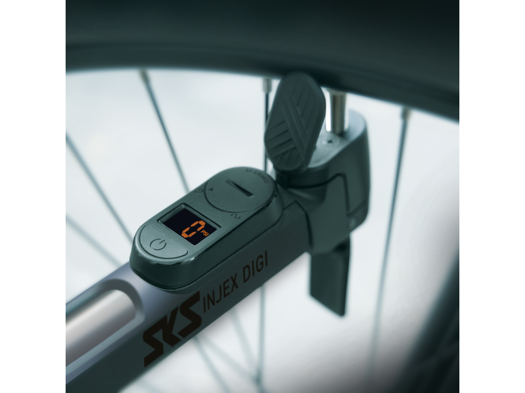 INJEX CONTROL DIGI je vybavena digitálním, snadno čitelným tlakoměrem, který umožňuje přesné měření tlaku na cestách. Má také texturovanou dvoukomponentní rukojeť a ergonomicky potaženou kompresní trubici. Rukojeť ve tvaru T je ohnuta pod úhlem 60 stupňů, takže předloktí a pumpa tvoří během procesu pumpování přímku. To zajišťuje ergonomickou a pohodlnou manipulaci i při delším tlakování. Hlava pumpy s 5-ti stupňovým sklonem také výrazně usnadňuje huštění pláťů.