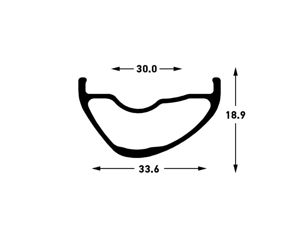 Tuhý asymetrický ráfek pro použití s bezdušovými plášti. Vnitřní šířka 30mm, vhodný pro pláště šířky 2.3 - 2.6"