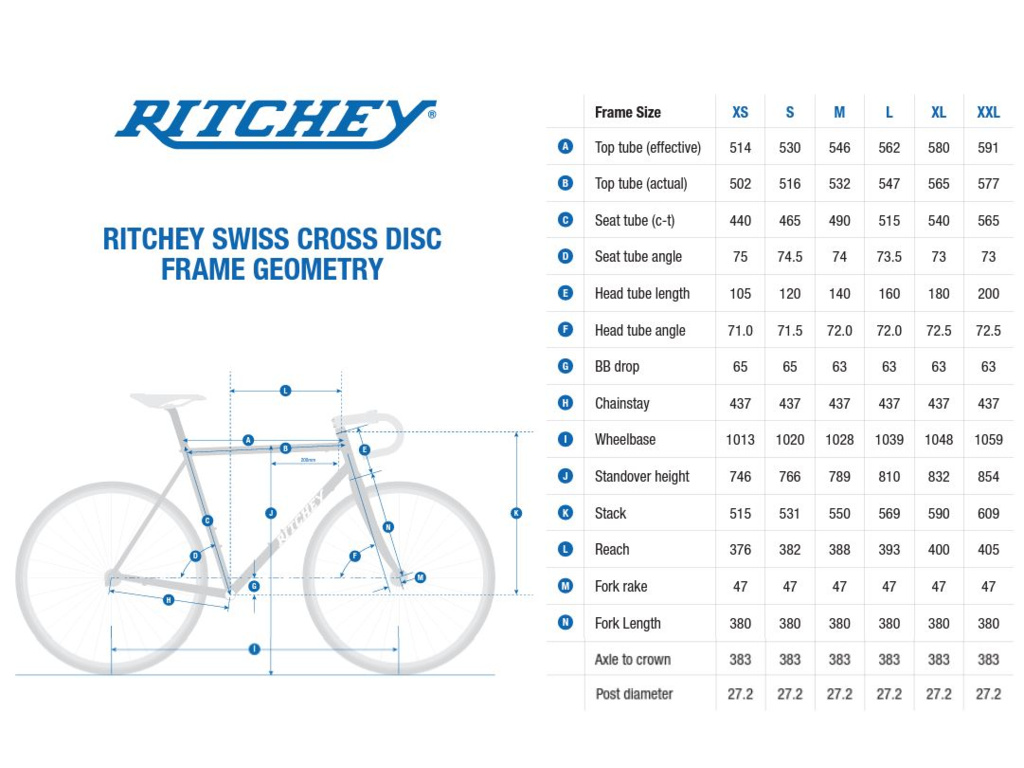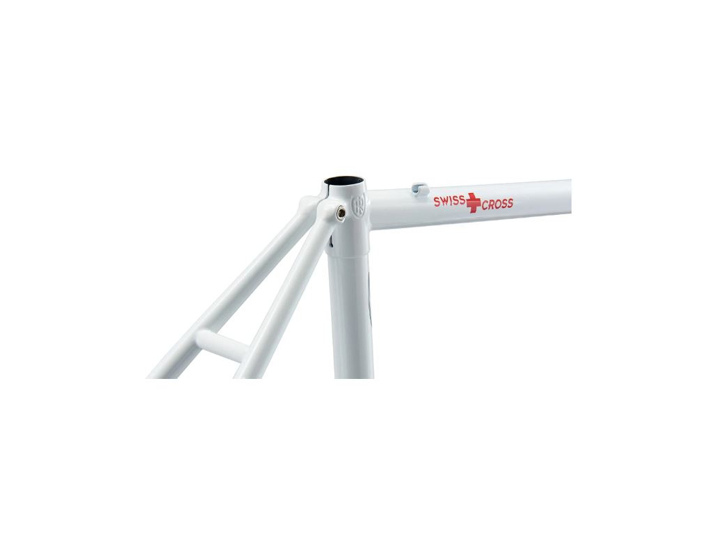 Swiss Cross je starostlivo zvarený metódou TIG s patentovanými trikrát rezanými oceľovými trubkami Ritchey Logic, ktoré teraz majú aktualizovanú jednodielnu konštrukciu priehradovej konštrukcie pre brzdy s plochým uchytením. Poskytujú rovnakú tuhosť a pevnosť ako predchádzajúce uchytenie a zároveň výrazne znižujú hmotnosť reťazovej vzpery. Či už sa jedná o jazdenie vyčerpávajúcich kilometrov na gravel bicykli alebo o cyklokrosové pretekanie, nový Swiss Cross je viac ako schopný zvládnuť všetko.
