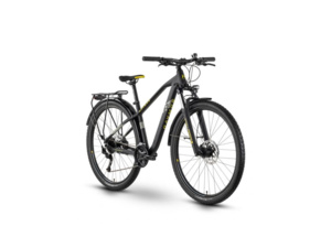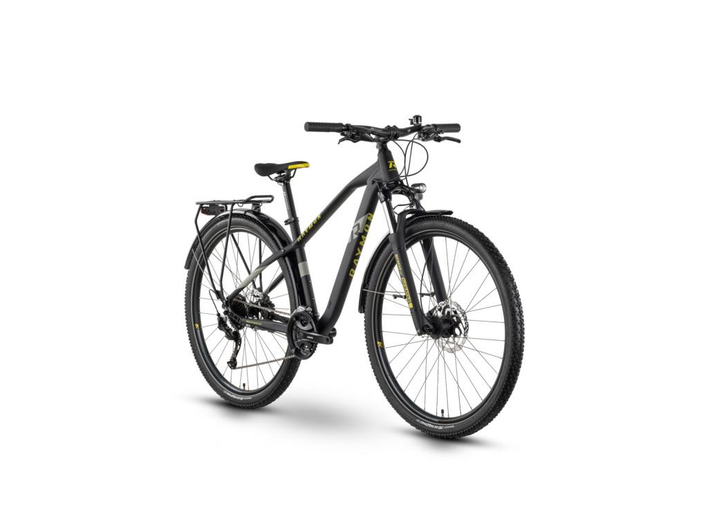 RAYMON HardRay 3.5 je univerzální MTB bike posazený na odolném hliníkovém rámu. Model je osazený vidlicí SR Suntour se 100 mm předním zdvihem, která skvěle žehlí nerovnosti terénu, řazením SHIMANO Deore a o spolehlivý brzdný výkon se starají brzdy Tektro. Ve městě a na cyklovýletech pak jistě oceníte světlo, blatníky, stojan a zadní nosič.