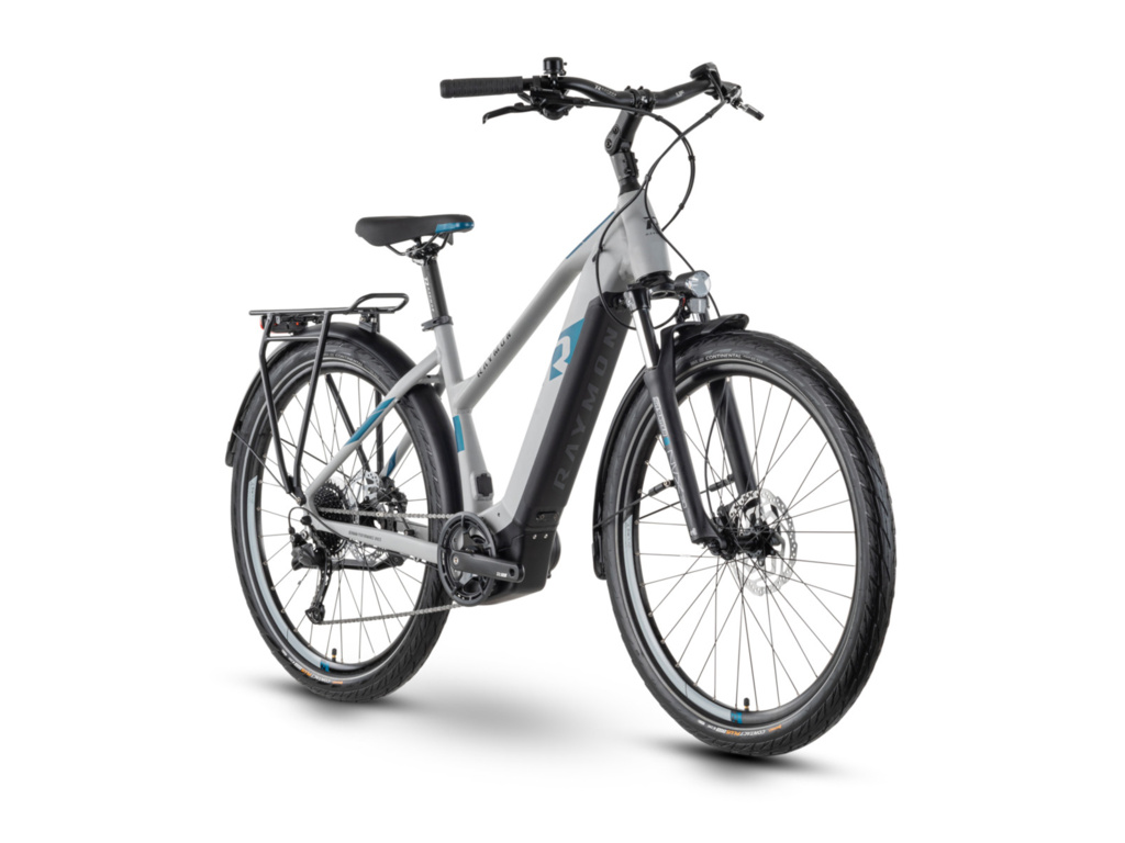 Výkonný a pohodlný dámsky elektrobicykel vhodný na cyklovýlety, ale vďaka zadnému nosiču, stojanu a krytu reťaze aj spoľahlivý dopravný prostriedok do práce? To je model RAYMON TourRay E 5.0 so zníženou hornou rámovou trubkou pre ľahký nástup.