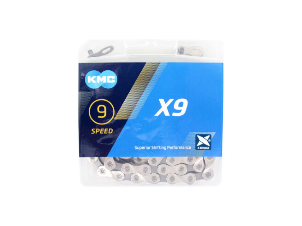 KMC X9 Grey je najdostupnejšia 9-rýchlostná reťaz KMC, vhodná pre horské aj cestné bicykle a elektrobicykle.