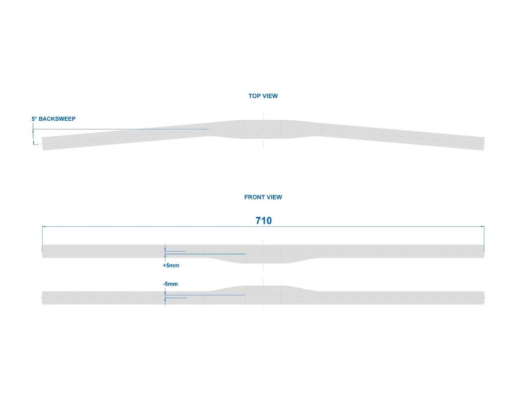 MTB XC športové riadidlá, šírka 710 mm, zahnutie 5 stupňov, matná povrchová úprava.