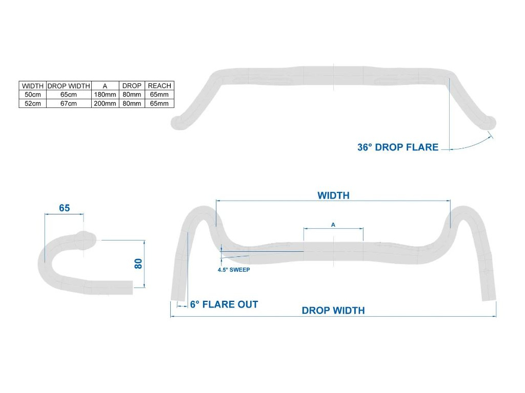 Ultimátné hliníkové gravel riadidlá v šírke 50 cm a s dropom 80mm a reachom 65 mm.