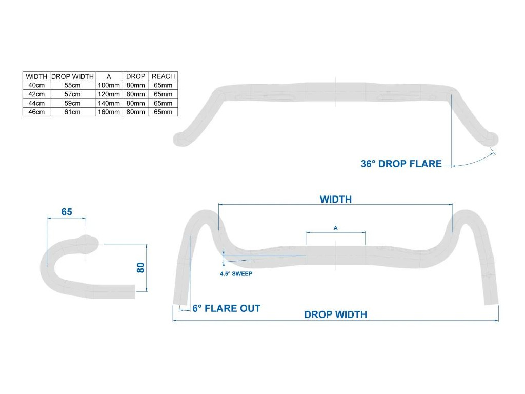 Ritchey Beacon Comp sú inovatívne priekopnícke Gravel riadidlá s hodnotami drop 80 mm a reach 65 mm s uhlami drop flare 36 stupňov a flare out 6 stupňov.