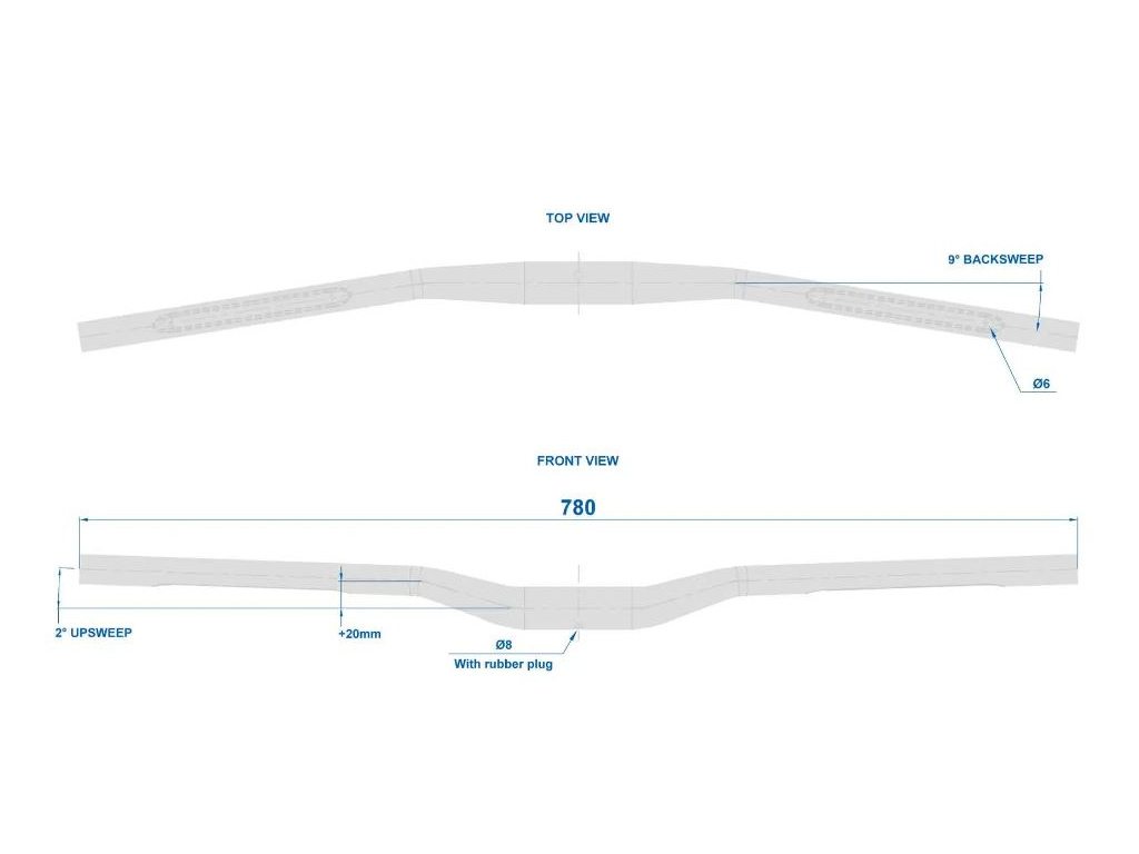 MTB riadidlá prispôsobené pre E-bike, možnosť vnútorného vedenia kabeláže, šírka 780 mm, priemer 31,8 mm, hmotnosť 325 g.