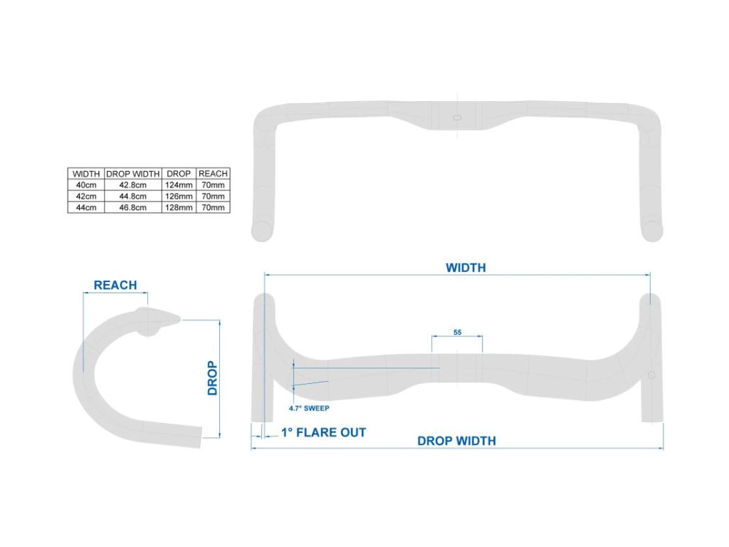 Drop: 126 mm (42 cm), 128 mm (44 cm)
